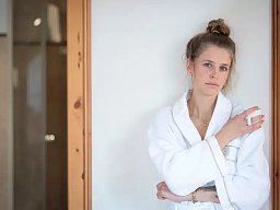 Der Sauna- und Fitnessbereich hat täglich von 17.00 - 22.00 Uhr geöffnet. Die Nutzung ist im Zimmerpreis inkludiert, Bademäntel sind auf den Zimmern vorhanden.