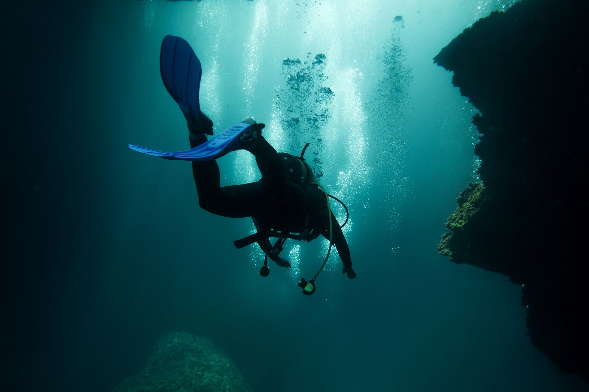 Schweben wie in Schwerelosigkeit, nur untermalt vom sanften Blubbern der Druckluft beim Ausatmen. Die an Land noch schwere Ausrüstung wird im Wasser zum angenehmen Begleiter. Jeder Moment wird ganz bewusst erlebt. Kein Wunder also, dass die meisten Taucher nahezu süchtig werden nach diesem einzigartigen Gefühl.