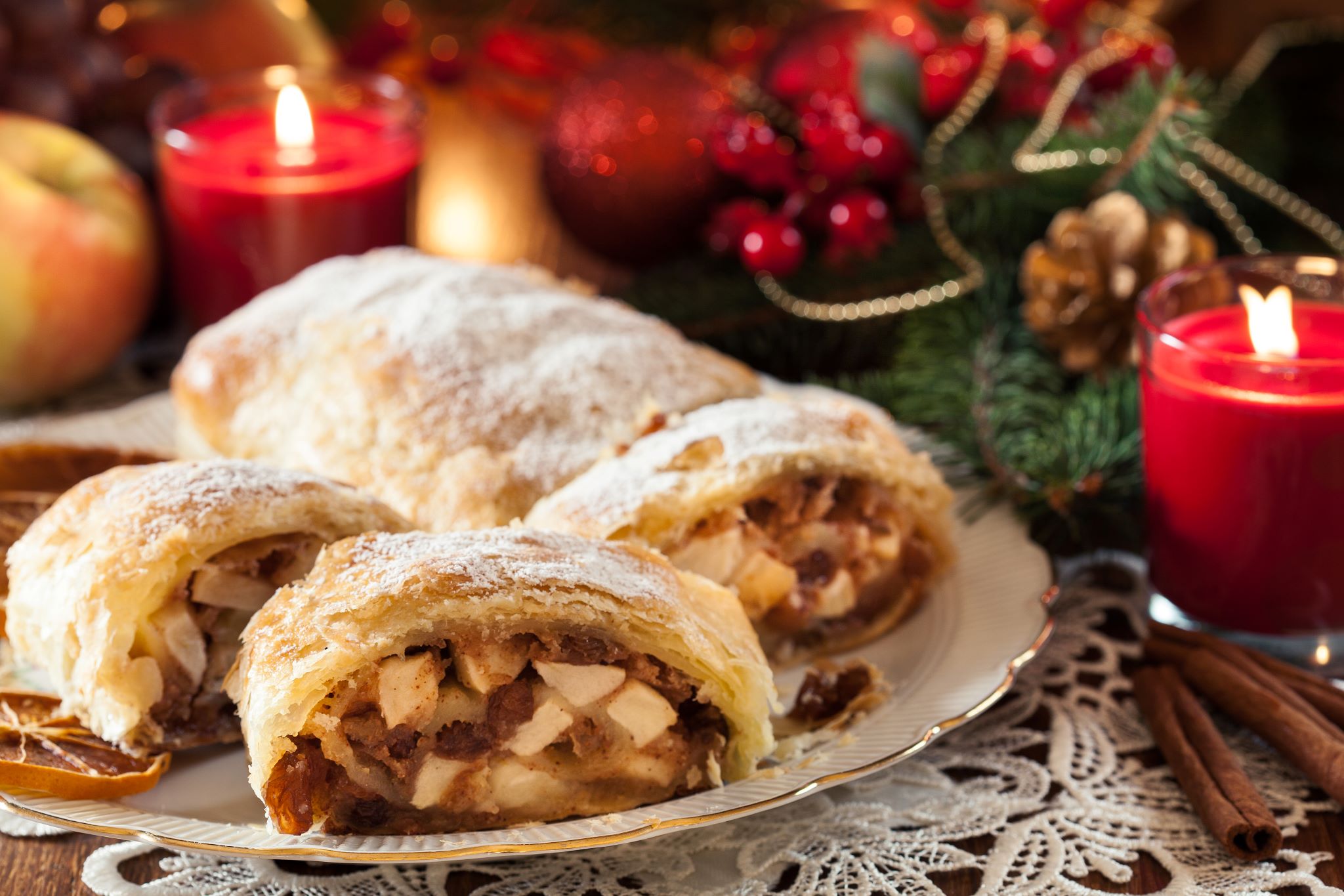 Homemade apple strudel with shortcrust pastry: